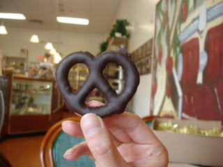 Alex tried a chocolate covered pretzel. My dad and I got some of their gelato. The one we went to did a $1 special of one item each day of the week. The day we went was a $1 for a scoop of gelato.